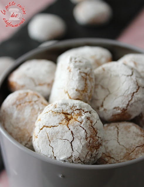 Quelques blancs d'oeufs abandonnés, un bon stock de poudre d'amandes, une touche de crème de marron pour plaire à ma copine Bizbiz : ces petits amarettis sont parfaits pour un petit cadeau gourmand de dernière minute !