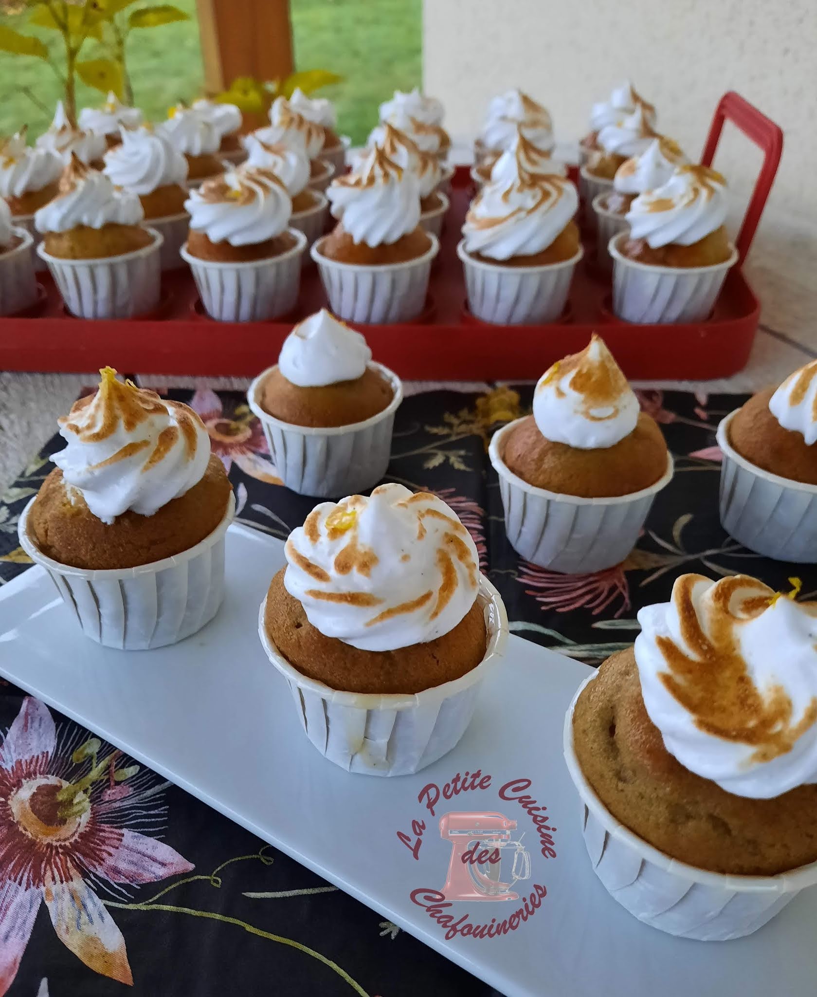 Garnir les muffins de crème au citron puis de meringue italienne.